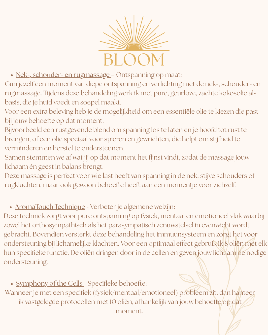 Bij Bloom Holistic Wellbeing draait alles om natuurlijke schoonheid en innerlijke rust.